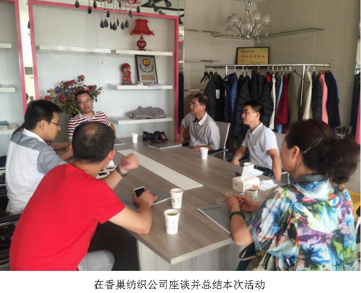 最后,到达民建宜秀区二支部副主任王根明的企业——安庆香巢纺织品有限公司,这是一家专业生产中高档服装及面料的制造商。所有产品出往欧洲、美国、加拿大以及日本市场。因业务发展需要和为客户提供更好的服务,公司分别在上海和杭州成立办事处。公司先后通过ISO9001-2008认证体系以及欧盟BSCI社会责任认证体系。参与走访领导与会员,参观了香巢的样品间,大家对衣服时尚的款式、品质赞不绝口。