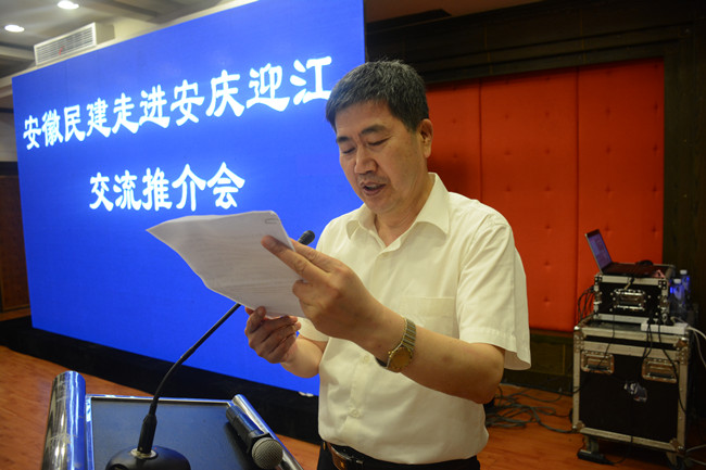 5月13日下午,安徽民建企联会赴安庆参加迎江区人民政府组织的交流推介活动,省政协副秘书长、民建安徽省委专职副主委陈广文出席会议并讲话。民建安徽省委秘书长史杨龙,黄山市政协副主席、民建黄山市委主委汪潇溪,,安庆市人大常委会副主任、民建安庆市委主委童学军,安庆市委统战部副部长、市工商联党组书记、常务副主席胡海生,民建淮南市委主委周方勤,中共迎江区委副书记、区长章洪海等领导参加,民建合肥市、安庆市、黄山市、淮南市、淮北市、马鞍山市、铜陵市、宿州市、池州市、滁州市企联会共200企业家参加推介活动。