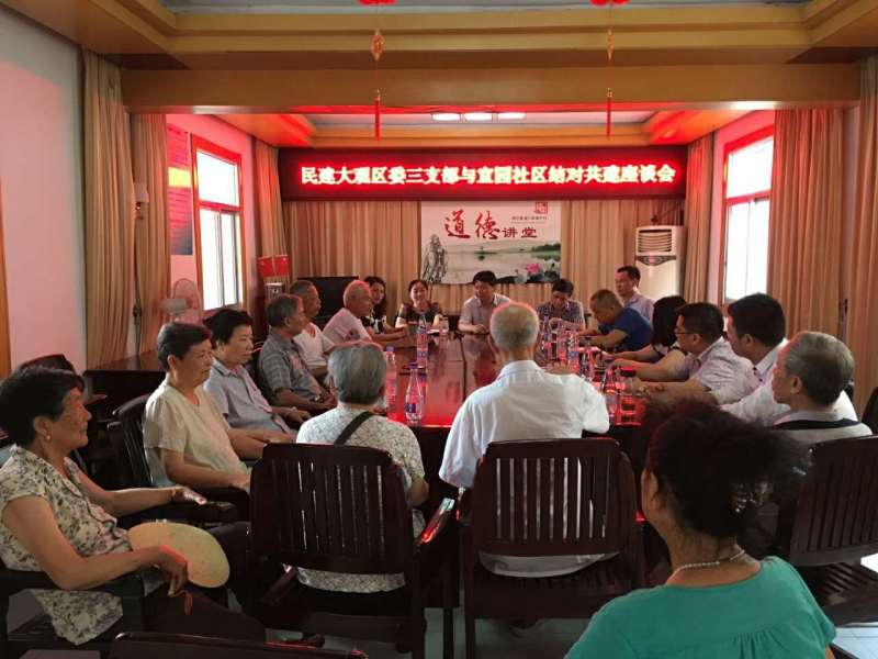 7月6日下午,民建安庆市大观三支部与宜园社居委开展结对共建活动——宜园社情民意信息调研座谈会。大观区主委白永飞,副主委吴星华,区委委员朱万霞应邀出席,三支部全体在宜会员,宜园社居委居民代表和部分老党员参加会议。会议由社居委主任何泳主持。
