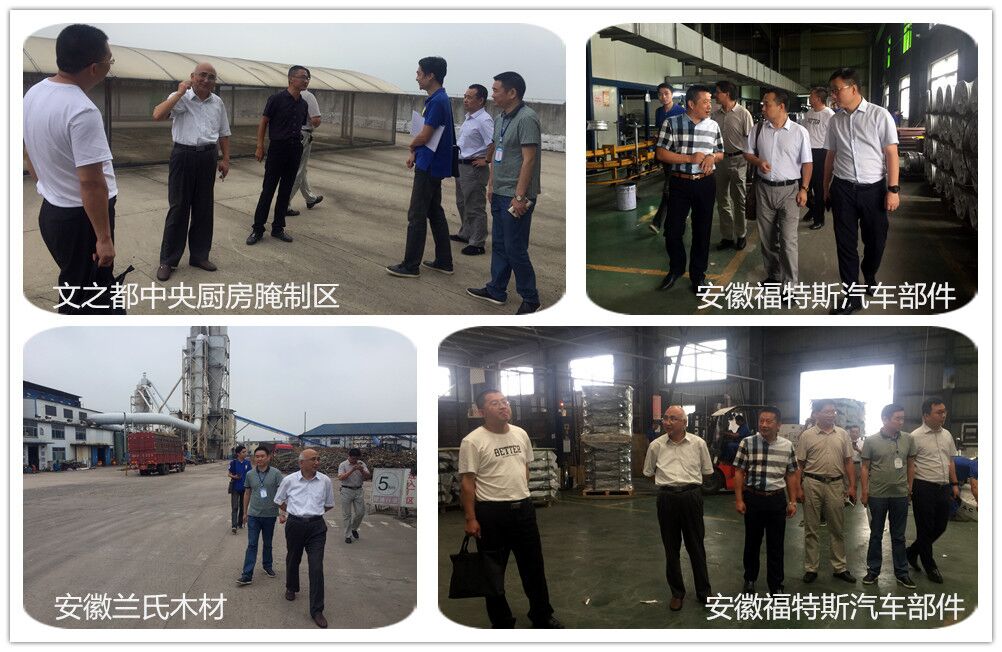 在桐城,走访了安徽文之都餐饮管理公司和安徽兰氏木业。二组理事(原大观区主委)龙启斌带领童学军一行参观了中央厨房大型制作厂房,感受到餐饮服务市场新思路、新技术的创新模式。在怀宁,走访二组理事(原迎江区主委)胡孝德企业——安徽福斯特汽车部件有限,并参观标准化生产车间。