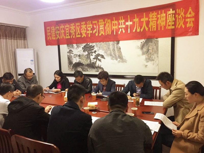 11月7日晚,民建安庆市宜秀区委在宜秀区同心工作站召开学习贯彻中共十九大精神座谈会。民建安庆市委副主委朱菊云,常委、秘书长冯晓斌出席并讲话。民建宜秀区委班子和各支部负责人参加会议。