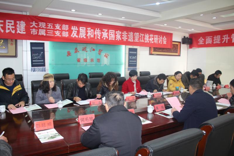 12月12日,安庆民建直属三支部、大观五支部发展和传承国家非遗“望江挑花”研讨会在安庆皖江中等专业学校召开,民建安庆市专职副主委汪爱萍、望江县统战部常务副部长曹文林等领导应邀出席了会议。大观五支部主委何鼎,市属三支部主委吴灿及两支部部分会员参会。