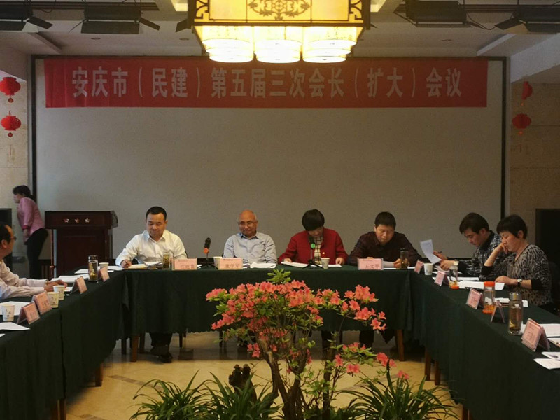 3月30日,安庆市(民建)企联会五届三次会长(扩大)会议在黄梅山荘召开。安庆市人大副主任、民建市委主委童学军,专职副主委汪爱萍、副主委王文平出席会议?;嵋橛?/span>民建安庆市委常委、企联会会长江连富主持。