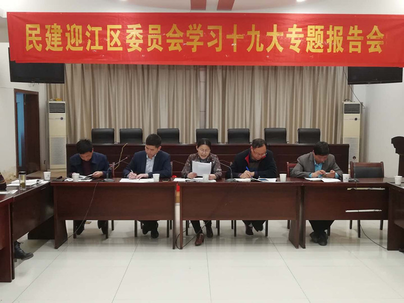 5月14日下午,民建迎江区委召开学习十九大专题报告会。民建安庆市委常委、迎江区委主委邓珺及区委班子成员出席会议,民建迎江区委会30多名骨干会员参加会议?;嵋橛汕敝魑齑ㄖ鞒?。