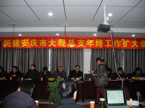 2011年12月16日下午,民建安庆大观总支在会员杨春所属群通商贸公司会议室召开年终工作扩大会议,总支班子成员和各支部负责人及老中青会员代表共40人参加了会议,民建市委会副主委石再华、组宣科科长冯晓斌应邀出席了会议。
