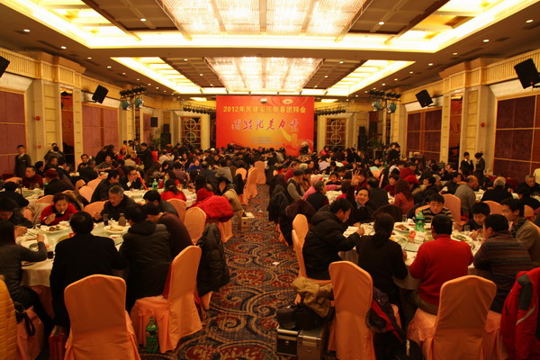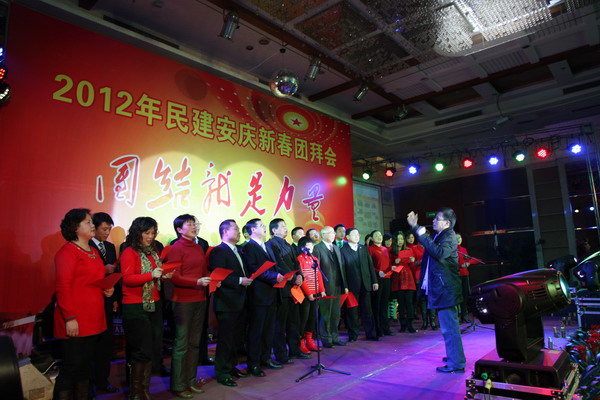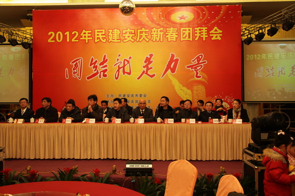 2012年1月4日,安庆市尊悦大酒店宴会厅里洋溢着节日的喜庆气氛,民建安庆市委会的全体会员们在这里欢聚一堂,载歌载舞欢度佳节。民建省委驻会副主委陈广文,副秘书长、宣传部部长何四平,组织部部长史杨龙,安庆市市政协副主席、市委统战部部长鲁德,市委统战部常务副部长邵光,市委统战部副部长殷传生、江宏滨及机关全体同志,迎江、大观、宜秀区委统战部相关领导出席了团拜会。