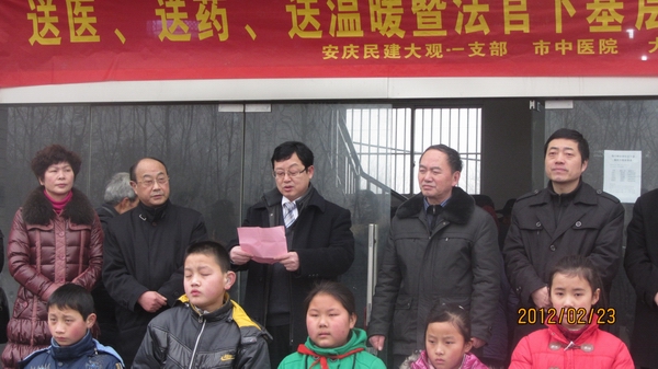 2月23日,民建安庆大观总支组织开展了赴??谡虬苍缜鸵?、送药、送温暖暨法官下基层活动。参加此次活动的领导有市政协常委、民建安庆市委会驻会副主委石再华、大观区政协副主席刘锦波、区委统战部部长周水旺、民建安庆市委会秘书长冯晓斌,区委组织部副部长何祯辉、区卫生局局长汪菁、区法院副院长李志勤、区法院关工委主任何世宏、区卫生局副局长刘东东、??谡虻澄橹闭牌艋?、区新闻中心副主任戴伟等。领导们在讲话中充分肯定了本次活动的意义,石再华副主委向广大群众介绍了民主建国会的基本情况,以及民建安庆市委会组织本次活动的意义。这次活动扩大了安庆民建对外影响。
