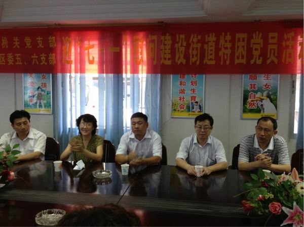 为庆祝中国共产党成立91周年,2012年6月30日上午,在安庆市迎江区建设街道办事处会议室,安庆市台联党支部,民建安庆市迎江区委会五、六支部联合开展“迎7.1慰问建设街道特困党员”活动。中共安庆市委统战部副部长余玉金、市台胞台属联谊会会长杨琴、民建安庆市委副主委石再华、秘书长冯晓斌、市委统战部党支部副书记刘福用、迎江区统战部副部长汪文新、民建迎江区委主委胡孝德、副主委陶明卫、五支部主任陈安宁、六支部主任汪华俊及民建会员代表应邀参加了活动。