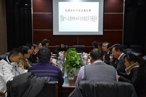 2012年12月1日上午,民建安庆市委直属支部在安庆天仙河大酒店召开了“贯彻十八大精神和加强自身建设学习座谈会”。直属支部全体会员参加了会议,迎江、大观、宜秀三个区委的负责同志应邀参加。市委统战部常务副部长邵光,民建市委副主委刘来富、石再华、汪爱萍等领导出席了会议。
