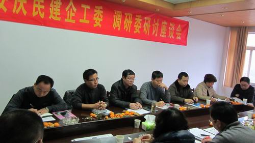 2012年12月15日上午九点,安庆民建企工委、调研委在民建安庆市委会机关会议室联合召开课题研讨座谈会,会议由市委会专职副主委石再华主持,企工委、调研委负责人参加了本次会议,民建市委常委秘书长冯晓斌、常委企工委主任王文平、常委企联会会长江连富、部分市人大代表、政协委员出席了会议。