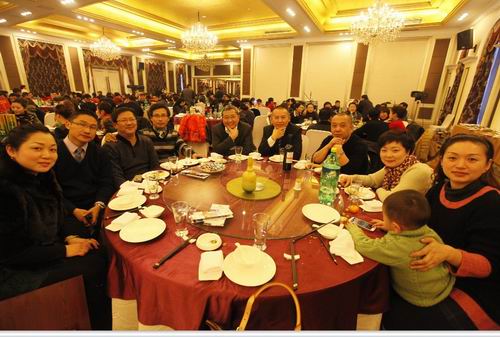 市人大副主任、民建安庆市委主委童学军在参加省政协十一届一次会议选举后专程从合肥赶回安庆看望会员,并在宴会上发表了热情洋溢的新春祝福。