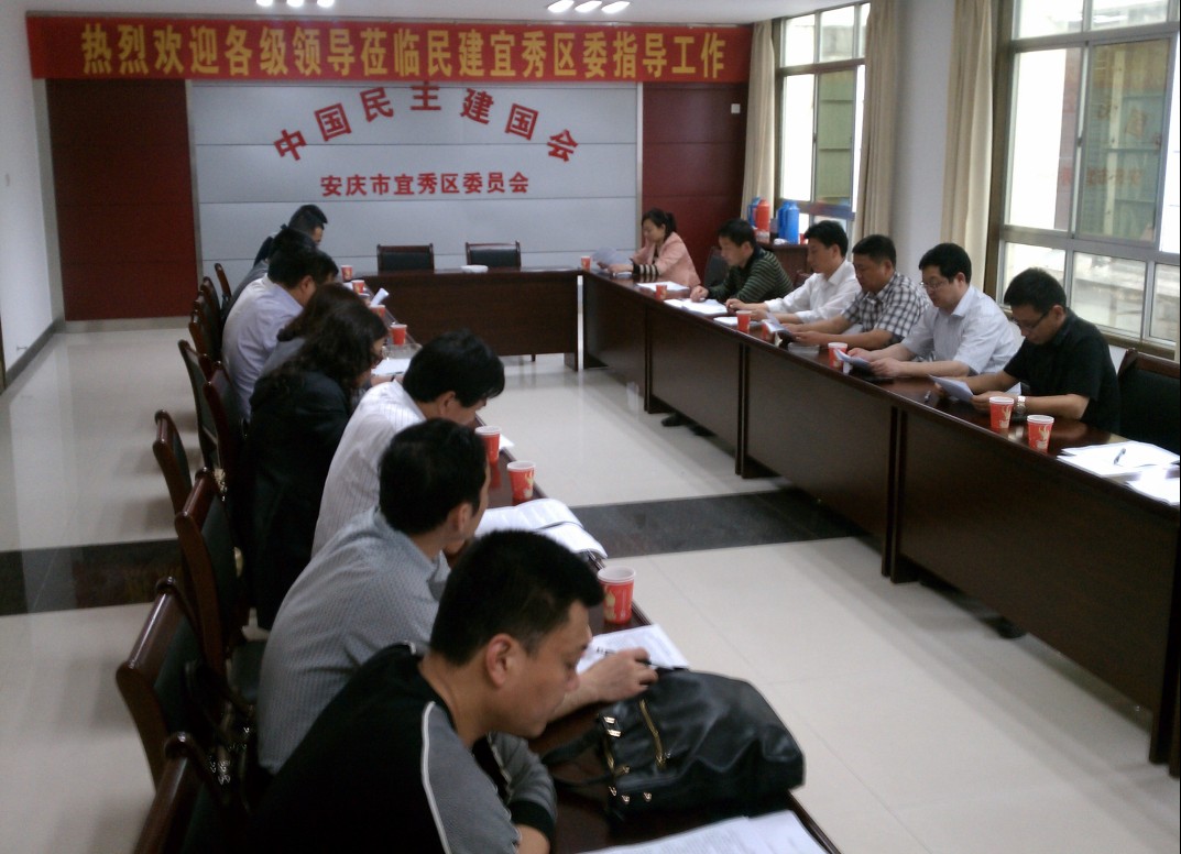 2013年5月10日,民建安庆市宜秀区委在位于通配集团三楼的民建宜秀区委会议室举行“重温五一口号,学习同心思想”座谈会,区委班子和各支部近20名会员参加了座谈。市委统战部副部长余玉金、民建安庆市委会专职副主委石再华、常委、秘书长冯晓斌、市委统战部机关党委专职副书记刘福用、市委统战部党派科副科长杨林峰等出席会议?;嵋橛擅窠ㄒ诵闱魑〗≈鞒?。