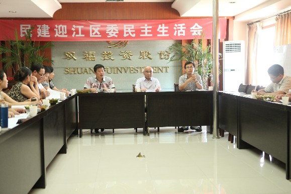 2013年7月27日,“民建安庆市迎江区委民主生活会”在民建会员王文平所属企业------安徽省双福投资股份有限公司会议室召开。安庆市人大副主任、民建安庆市委会主委童学军,民建安庆市委会副主委汪爱萍,民建安庆市委会常委、秘书长冯晓斌,民建安庆市委会常委王文平应邀出席会议,调研委、老龄委负责人、民建安庆市迎江区委会领导班子成员,民建安庆市迎江区委会六个支部正、副主任,新会员代表等参加会议?;嵋橛捎魑⒌轮鞒帧?/span>