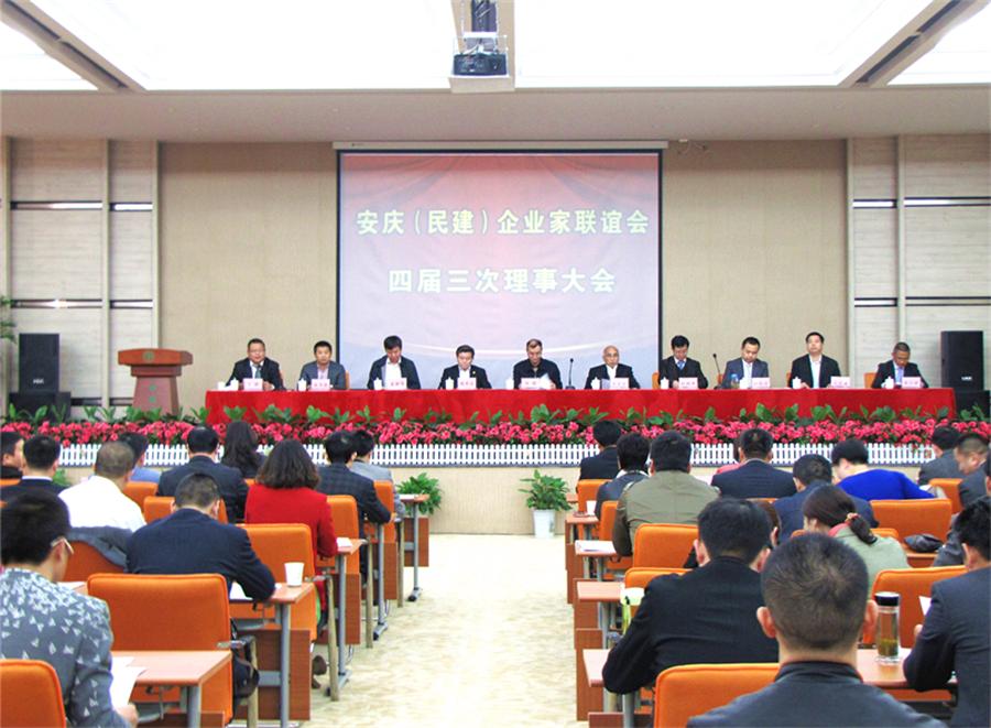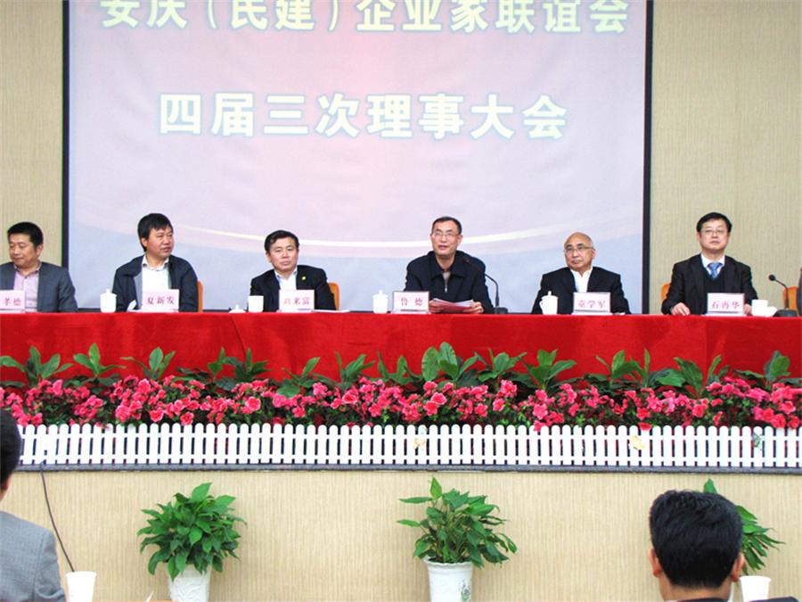 2014年4月20日,安庆(民建)企业家联谊会四届三次理事大会在市中源商学院召开。市政协副主席、中共安庆市委统战部长鲁德,安庆市人大副主任、民建安庆市委会主委童学军,副主委刘来富、石再华,省民建企联会执行副理事长夏新发,副理事长吴宏斌,民建安庆市委常委、秘书长秘书长冯晓斌,民建安庆市委常委王文平、江连富等出席会议。安庆(民建)企业家联谊会四届理事会全体成员、民建安庆市委委员、民建安庆市委会机关社会服务科科长、民建安庆市各区委会、市属支部、各专委会主任委员参加了会议。会议由常务副会长丁健主持。