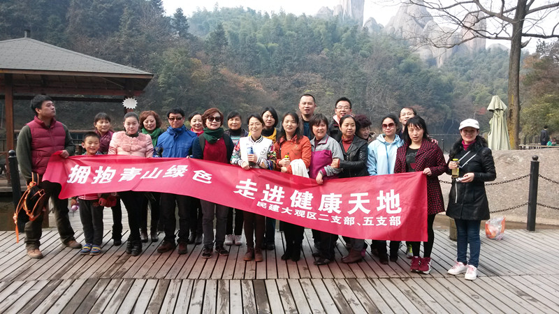 民建安庆市大观二、五支部联合举办户外拓展活动2014年11月16日,由民建安庆市大观二、五支部联合举办的“拥抱青山绿水,走进健康天地”户外拓展活动取得了圆满成功。民建安庆市大观区委副主委朱宜、委员李玉荣等应邀参加。本次户外活动从杨桥的龙泉寺步行至巨石山的前门,活动有一定的难度和强度,大家互相帮助,互相鼓励,互相扶持,用实际行动突显了绿色、健康、环保、互助的活动主题。 民建安庆市大观二支部 陈源芳